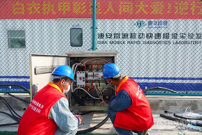 7月1日17:00,國網靈璧縣供電公司接到任務,配合縣疫情防控應急指揮中心為緊急設立安裝的7個移動PCR方艙實驗室提供電力保障。該公司立即組織黨員服務隊趕赴縣足球訓練基地前廣場勘察,快速制定供電施工方案,連夜安裝400kVA配變一臺,地埋敷設高壓電纜200米。在全體人員努力下,7月2日7:54,移動PCR方艙實驗室全部通電運行。(通訊員 張啟才 劉意瀟 記者 楊雪)