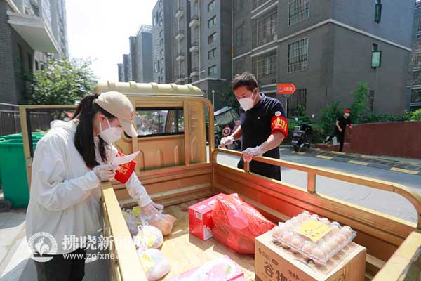 7月12日,在泗縣虹城街道四里橋社區(qū)阜康御龍公館小區(qū),社區(qū)志愿者根據(jù)訂單分揀配送菜品。該小區(qū)物資保障組每天都會通過微信群發(fā)布當日菜單,居民根據(jù)自家需求,選擇所需菜品,經(jīng)過統(tǒng)計匯總后,由小區(qū)物資保障組與保供超市對接,消毒后送菜上門,確保群眾吃上放心菜安全菜。據(jù)悉,小區(qū)居民居家隔離期間,泗縣當?shù)爻浞终{度各種力量,確保隔離期間居民的日常所需得到滿足。記者 蘇洋 攝