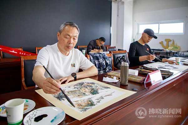 4月24日,宿州市書畫院組織10余名書畫家走進埇橋區金海街道辦事處,開展“慶五一·文化進基層”活動。書畫家們揮毫潑墨,創作出一幅幅筆墨酣飽、氣韻生動的書畫作品,一筆一劃都蘊含著藝術家們對藝術的執著追求,展現了他們的深厚功底和對社區居民的美好祝愿。 記者 蔣幫煜 攝