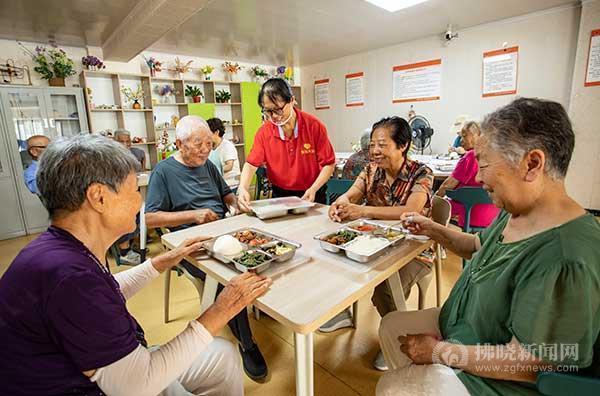 8月5日中午,埇橋區東關街道北苑社區養老服務站,社區老人在享受熱氣騰騰、葷素搭配的營養套餐。該社區養老服務站成立并運行以來,以細致入微的服務,不僅讓社區老人感受到了家一般的溫暖,也解決了老人子女的后顧之憂。 記者 馬峰 攝