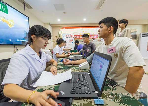 8月12日,在體檢現場,應征青年在征兵工作人員的指引下,分批有序進行外科、眼科、口腔科等14個體格項目檢查及士兵職業基本適應性檢測。當前,埇橋區2025年下半年征兵體檢工作正全面展開,1000余名應征青年接受祖國挑選,踏出圓夢軍營的第一步。 記者 馬峰 蘇洋 攝