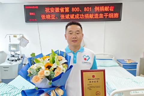 安徽省第800例造血干細胞捐獻者張曉亞 來自宿州市靈璧縣