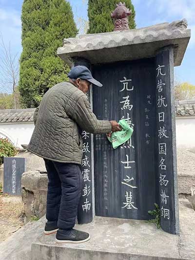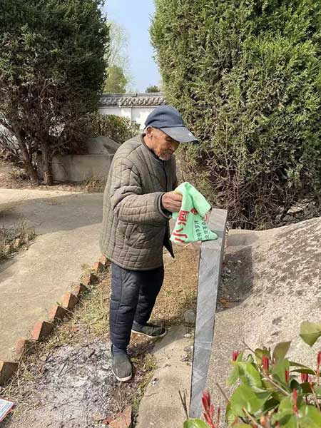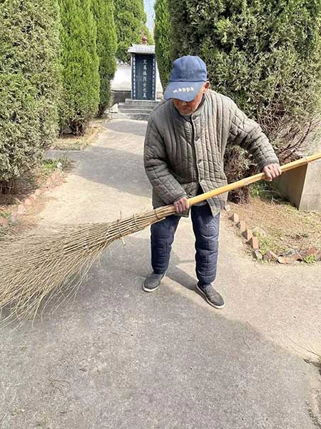 年近古稀的他,每天帶著工具,清理陵園內外的秸稈和雜草。附近村民、中小學生被他的行為所感動,主動前來幫忙,陵園很快煥然一新。