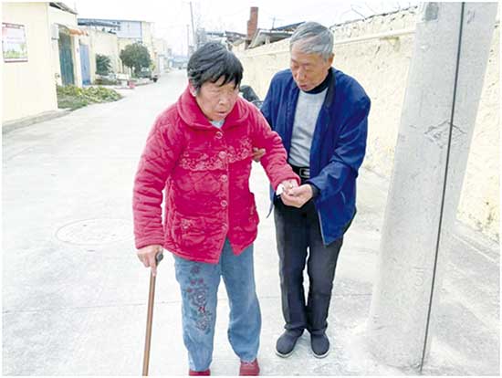 吳昌俠在醫(yī)院住了一個(gè)多月后出院回到家中,因腦梗的后遺癥致使行動(dòng)不便,左手無(wú)法用力。趙成一看到老伴日益消沉著急不已,開(kāi)始著手于老伴的日常護(hù)理鍛煉。每天上午起床后,便給老伴按摩腿部和手部,并攙扶著她在院子里來(lái)回走動(dòng),天氣良好的時(shí)候便帶著老伴去康復(fù)中心練習(xí)腿腳伸展。妻子在日常生活中也多有不便,特別是晚上需要起夜六七次,趙成一每天夜里對(duì)老伴一些輕微的動(dòng)作都保持著警覺(jué),及時(shí)攙扶老伴起床直至她躺好睡著。
