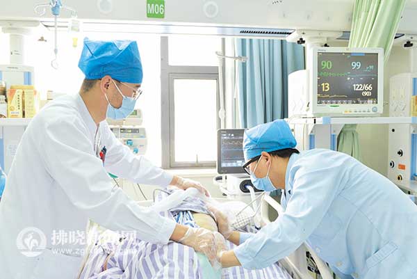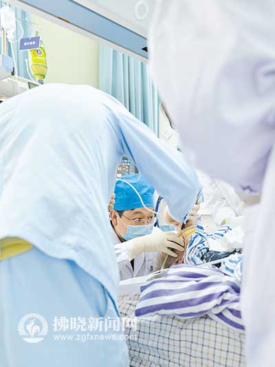 說話間,一位患者突然出現血氧飽和度急劇下降,情況危急,顧陳峰和同事們迅速協助醫生氣管插管,并準備呼吸機等,經過10幾分鐘的搶救,患者轉危為安。在ICU里,這樣的場面經常在上演,這群白衣天使隨時在為患者生的希望戰斗。