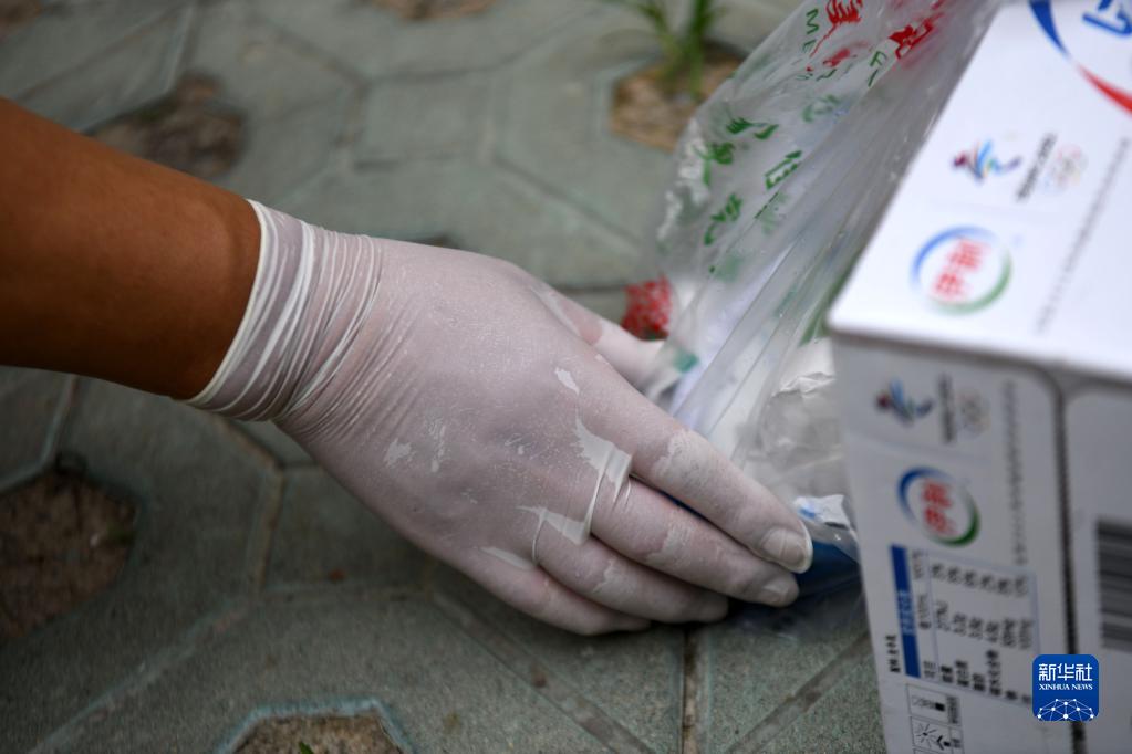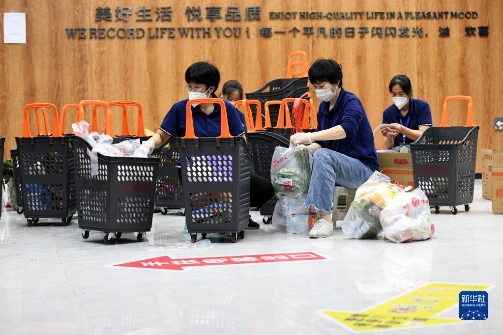 7月4日,泗縣玉蘭小區(qū)志愿者整理小區(qū)居民購(gòu)買(mǎi)的商品。