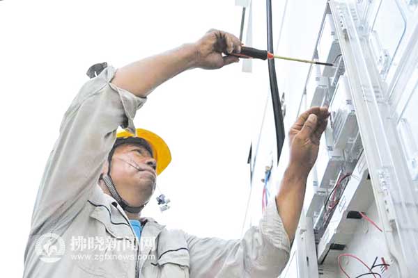 7月12日,宿州市城郊供電公司順河供電所的工作人員為居民接通入戶電表。 特約攝影 祝家剛