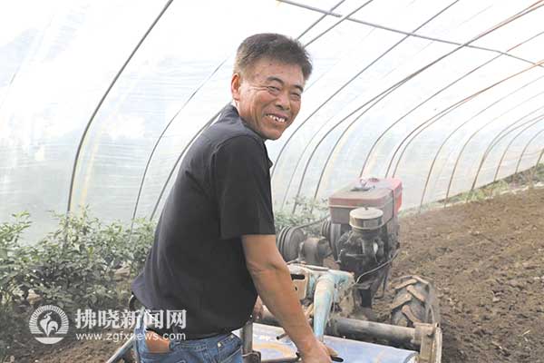 埇橋區西二鋪鎮沈家村農民周克華正在大棚里翻耕土地。 特約攝影 張成伍