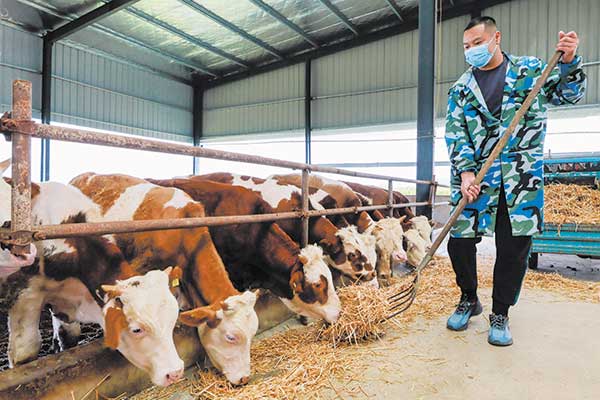 “家養(yǎng)兩頭牛,穿衣花錢不用愁;家養(yǎng)十頭牛,一年一座小洋樓;家養(yǎng)百頭牛,小康生活直流油……”靈璧縣楊疃鎮(zhèn)邱廟村新興養(yǎng)殖家庭農(nóng)場(chǎng)負(fù)責(zé)人冉慶祥高興地說,“我從2017年養(yǎng)殖10多頭牛開始至今已發(fā)展到120多頭育肥牛,‘撿’來的秸稈作飼料,每年掙上60萬(wàn)沒問題!擴(kuò)大規(guī)模時(shí),政府幫助協(xié)調(diào)195萬(wàn)元的貸款,我的干勁更大了。”