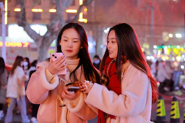 逛逛街,發(fā)個(gè)朋友圈。 記者 董虎