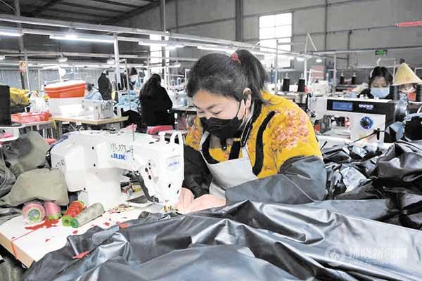 埇橋區(qū)盈德服飾有限公司工人正在趕制訂單。特約攝影 李華勛
