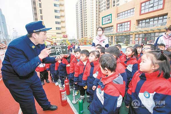 教室里,權濤用趣味卡通圖片與小朋友們互動問答,生動活潑地為幼兒園全體師生講授了“生活中易引發(fā)火災的錯誤行為”“火警電話的正確撥打”“火災現(xiàn)場如何安全逃生”“消防標識如何辨認”“滅火器的正確使用方法”等消防常識。