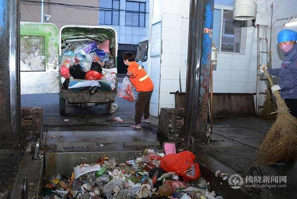 “我現在負責三里灣街道、南關街道的部分社區的垃圾清運,每天早上4:30之前上崗。”今年50歲的關玉萍,個頭不高,一邊麻利地收拾垃圾桶周邊灑落的垃圾,一邊跟我說,早上的垃圾最多,桶里裝不下了,有人就把垃圾放在桶邊上,我們要清理干凈再裝車。從院子里面把垃圾桶推到垃圾車旁邊,掛桶、抬升、抖桶、降桶,然后再把桶推到原位,關玉萍熟練地操作著,幾乎是一路小跑,我有些跟不上她。