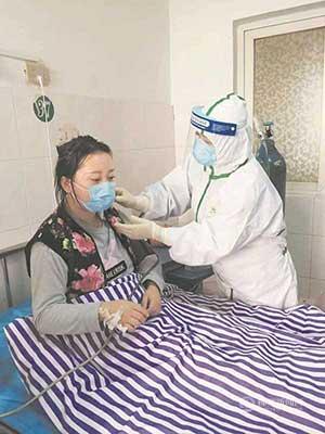 2020年2月2日,護士長劉湘云為我市第一例新冠肺炎確診患者做心理疏導、協助更換口罩。