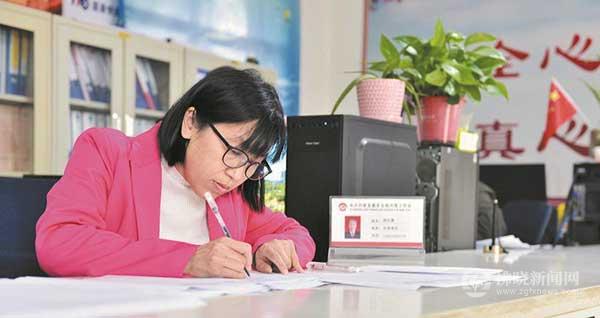 程紅霞在村部認(rèn)真登記幫扶對(duì)象信息。