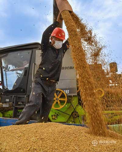 “現在機械化作業效率是以前人工收割的幾十倍,園區的5萬多畝小麥我們力爭4-5天內收割完,眼下天氣變化比較大,群眾的糧食入了倉,我們才心安。”薛樓板材加工園副主任包沛一邊指揮收割機進場,一邊向筆者介紹。