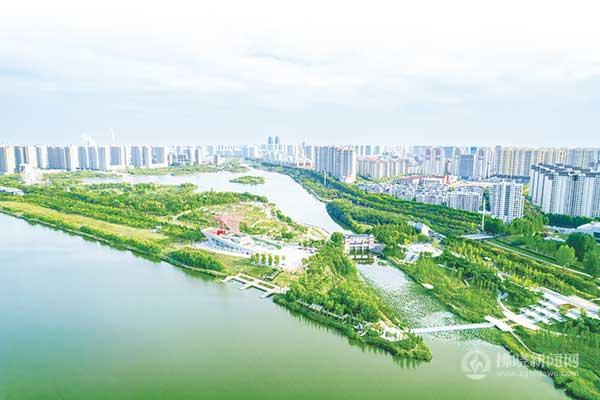 三角洲公園及新汴河景觀帶碧水藍(lán)天。