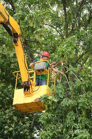 隨后,記者來到迎賓大道,園林中心養(yǎng)護(hù)隊(duì)副隊(duì)長徐濤正帶領(lǐng)工人在剪除化解樹線“矛盾”。他說,園林搶險(xiǎn)也是養(yǎng)護(hù)工作的重要一環(huán),特別是在夏季,極端天氣頻發(fā),極易造成樹枝折斷,影響市民生活和交通安全。搶險(xiǎn)救援隊(duì)員必須24小時(shí)待命,隨時(shí)奔赴一線,有時(shí)會(huì)高空作業(yè)處理險(xiǎn)情。