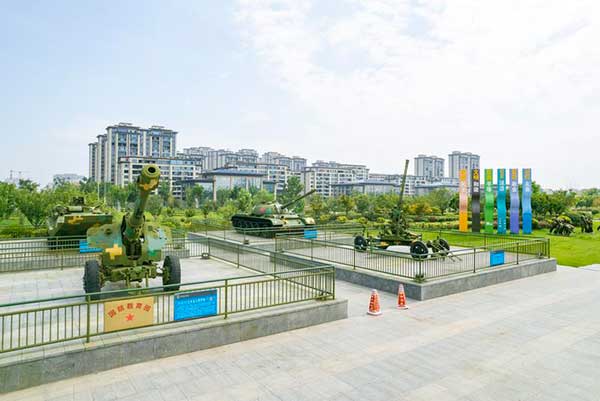 宿州市雙擁“一廊三園”(“一廊”是指雙擁文化長廊;“三園”是指雙擁主題園、國防教育園和紅色故事園)是我市前不久新添的一處紅色打卡地,位于宿城新汴河景區北岸。“一廊三園”內,圖文并茂的雙擁文化展板和道旗,退役下來的護衛艦、作戰坦克、自行火炮等軍事武器裝備,與宿州緊密聯系的紅色故事等雙擁元素吸引眾多市民前來參觀。