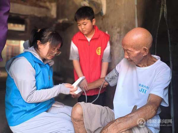三里灣街道社工站社工上門為轄區獨居老人量血壓。 趙偉 攝
