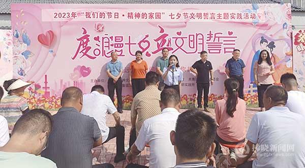 8月22日上午,碭山縣精神文明建設(shè)推進中心、碭山縣婦女聯(lián)合會、共青團碭山縣委員會聯(lián)合葛集鎮(zhèn)新時代文明實踐所在葛集鎮(zhèn)毛雷莊村開展了“度浪漫七夕·立文明誓言”主題活動。