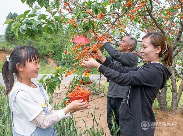 市民在鎮(zhèn)頭村采摘櫻桃。