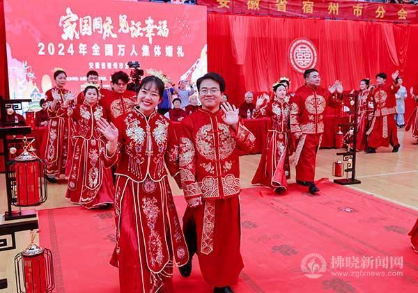 9月22日,在宿州學(xué)院體育館,我市100對(duì)新人參加全國(guó)萬人集體婚禮,喜結(jié)連理,共同許下“相守一生、白頭偕老”的幸福承諾。
