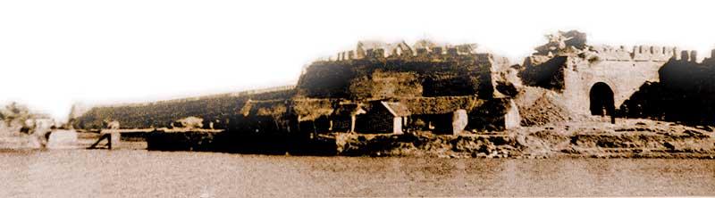 古城西門附近城墻被我軍炸開了一個斜坡豁口。