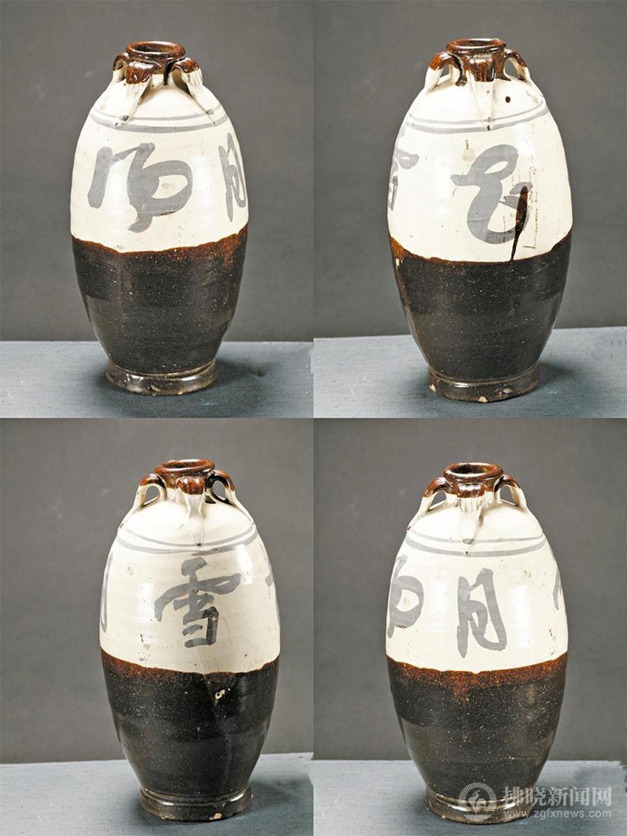 水運是古代最重要的交通方式。展柜里,大運河宿州段出土的瓷器、陶器、骨器等珍貴文物,見證了那段“槳聲燈影、商賈云集”的繁華歲月。其中鎮館之寶之一的“風花雪月”四系瓶,出土于埇橋小隅口,是金代磁州窯系產品,現為國家一級文物。此瓶肩部剔刻纏枝花圖案,線條流暢、大氣,腹部開光,內行草書“風花雪月”四字,造型古樸挺拔。作為一件盛酒器,“風花雪月”四系瓶完美結合了書法藝術、酒文化和制瓷工藝,是一件不可多得的瓷器精品。