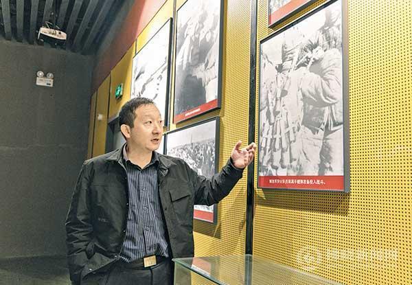 在淮海戰役雙堆集殲滅戰紀念館,義務講解員周楊講解照片背后的故事。