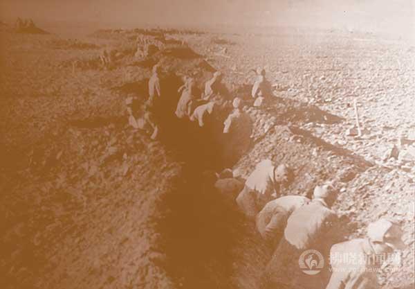 解放軍戰士挖的交通壕迫近國民黨軍隊前沿陣地。