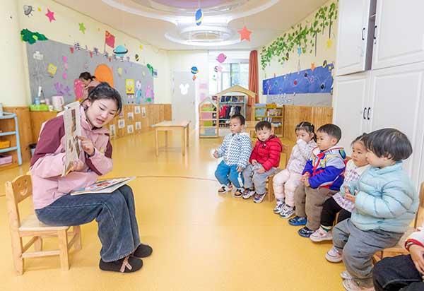 蕭縣金蕾托育早教中心的老師在給孩子講課。