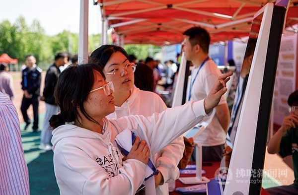 宿州職業(yè)技術(shù)學(xué)院畢業(yè)生在查看招聘會(huì)的崗位信息。