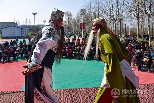 碭山縣周寨鎮(zhèn)的群眾在家門口觀看戲曲表演。
