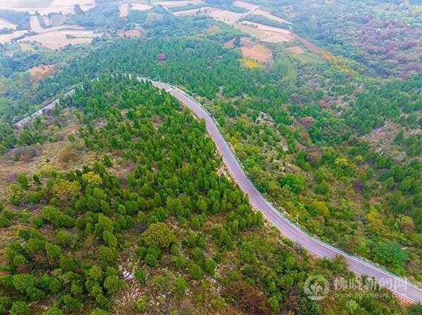 航拍的埇橋區(qū)夾溝鎮(zhèn)草場(chǎng)村草場(chǎng)盤山公路。
