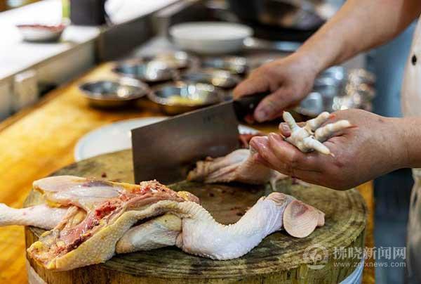 在宿州老梅飯店,大廚張崇將剛宰殺好的本地黃雞往案板上一丟,菜刀“咣咣”幾下,雞塊整整齊齊排好隊(duì),嘴里念叨:“這雞不是養(yǎng)在籠子里的速成雞,而是當(dāng)?shù)厣B(yǎng)的‘跑地雞’,整天在田間地頭溜達(dá),吃蟲子、啄野草,肌肉緊實(shí),燉出來才香。”