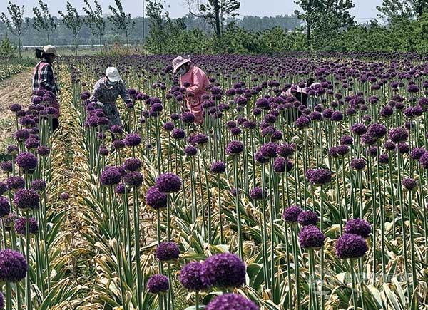 拂曉新聞網(wǎng)--拂曉報(bào)訊(通訊員 閆翠娟)近日,在碭山縣周寨鎮(zhèn)張老家村花卉種植基地,一株株大花蔥爭相綻放,渾圓飽滿的花球組成浪漫的紫色風(fēng)景線。