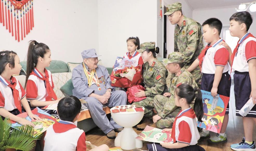八一建軍節前夕,蕭縣軍地聯合開展“致敬抗戰老兵”走訪慰問活動,為老兵們送上敬意和祝福。在抗戰老兵李洪斌家中,走訪小組和少先隊員聆聽老兵講述戰斗經歷。 馮莉 攝