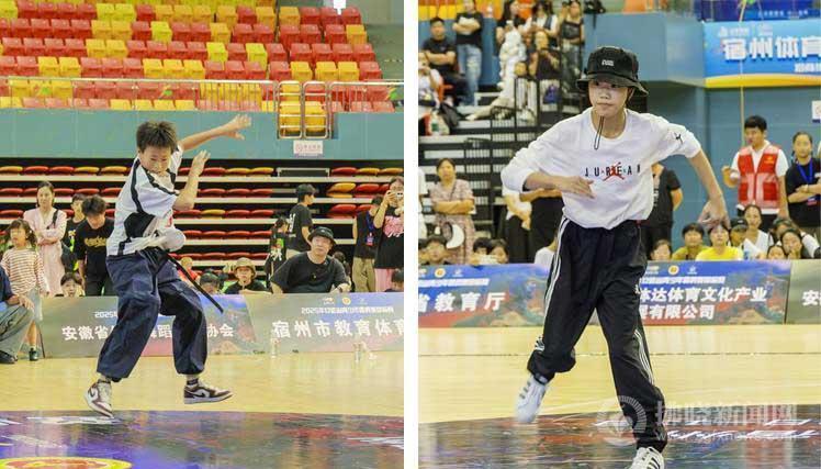場館內,燈光聚焦的舞臺中央,地板動作、定格造型、流暢的步伐輪番上演,每一個動作都充滿張力。作為東道主,宿州派出40名選手參賽。“能在家門口比賽太開心了,家人和同學也都來給我加油了。”來自宿州的運動員丁駿豪剛剛在乙組男子比賽中完成一套高難度動作,引得場下掌聲雷動。他說:“平時每天放學后都會練兩個小時,這次想借著主場優勢,好好發揮,不給自己留遺憾。”