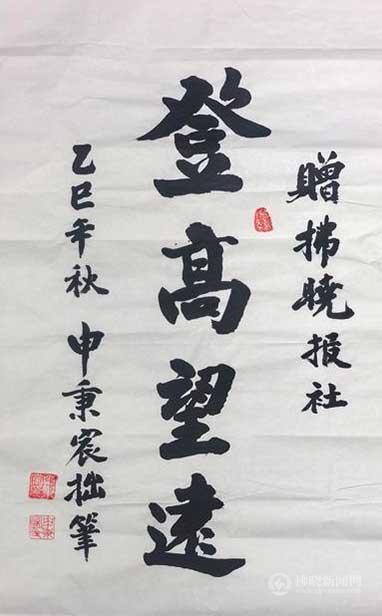 臨別之際,申老欣然給“娘家人”題字贈言。墨香氤氳中,申秉宸老人凝神聚息,用那雙布滿歲月痕跡的手握住筆桿,揮毫寫下“登高望遠”四個遒勁有力的大字。筆鋒因年邁而微顫,意蘊卻剛健磅礴,每一筆、每一劃皆凝聚著老人深深囑托與殷切期許。