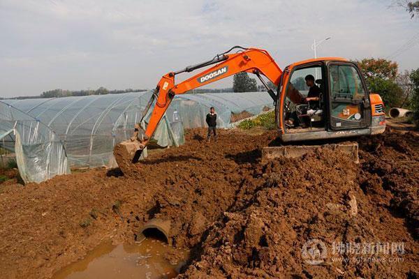 9月21日,在埇橋區(qū)順河鎮(zhèn)四里中村,村民用挖掘機(jī)清溝瀝水。近期埇橋區(qū)降雨量較大,該村農(nóng)民展開清溝瀝水埋設(shè)涵管,保證“三秋”工作順利進(jìn)行。特約攝影 祝家剛