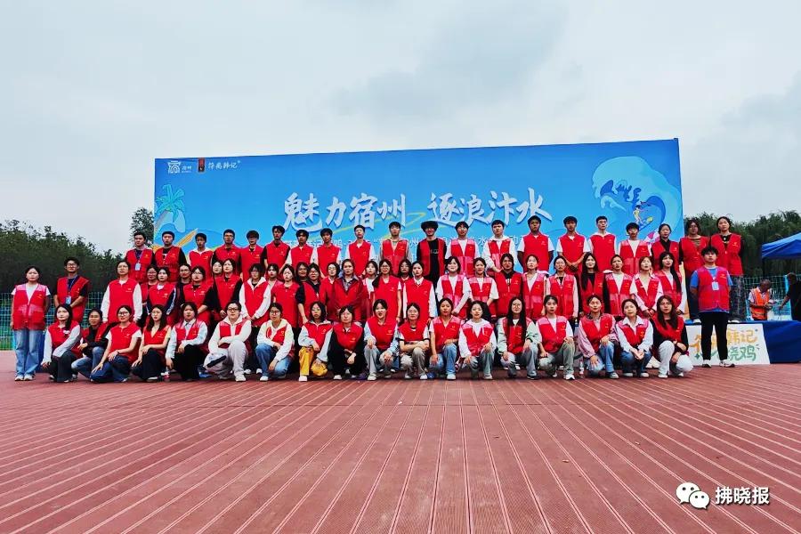 10月1日上午,符離韓記燒雞·2025“魅力宿州 逐浪汴水”水上運動系列賽暨千人橫渡新汴河公開水域游泳比賽在宿州市水上運動訓練基地舉行。賽場上,來自全國多地的千名游者齊聚宿州,在搏浪擊水后勇渡新汴河。賽場外,來自皖北衛生職業學院的70名志愿者,用熱忱與專業筑起保障防線。這抹躍動的“志愿紅”,織就了賽場邊最動人的風景。