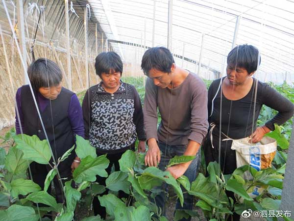 深秋的黃昏,在泗縣長溝鎮邵莊村,脫下軍裝已經9年的村民張成在大棚里正忙活。見有人過來,趕忙放下手頭活,趁天黑前帶我們轉了幾個棚子。“今年茄子的長勢尤其好,看這個頭兒,春節前可以上市;茄子已經開始授粉,元旦前采摘沒問題……”聽著張成的介紹,活脫脫一位蔬菜專家。但9年前,對于大棚蔬菜種植,他是一臉茫然,甚至是一無所知。