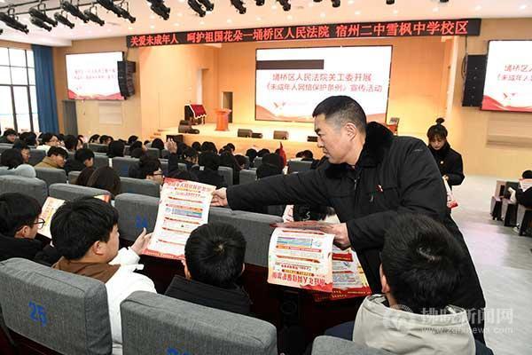 12月28日上午,埇橋區(qū)法院法官在宿州二中雪楓中學(xué)校區(qū)宣講《未成年人網(wǎng)絡(luò)保護條例》。《未成年人網(wǎng)絡(luò)保護條例》將于2024年1月1日起施行,埇橋區(qū)法院組織法官深入轄區(qū)中小學(xué)校園進行大力宣講,進一步增強未成年人使用網(wǎng)絡(luò)、文明上網(wǎng)的安全意識、法治意識。阮傳寶 攝