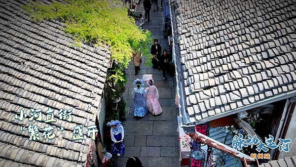 歲月更迭,小河直街見證了運河畔的沉寂與新生。沿街樓宇枕水而居,古韻滿滿的街區不僅留存了運河的市井文化,還融合了簪花、手作、圍爐煮茶、貓咖等備受年輕人歡迎的新風尚。在這里,每隔幾步就能見到一位身著漢服的簪花美人,從寧靜到繁華,簪花見證了許多因運河而興的店鋪,也讓我們看到了古運河旁正在孕育的新生機。