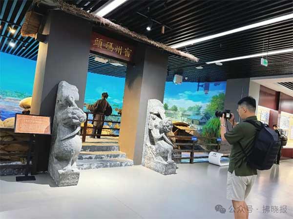 采風團記者拍攝館內(nèi)“宿州汴河宋代碼頭場景”