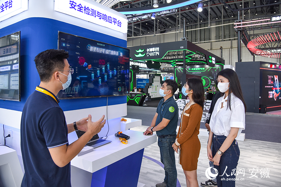 工作人員向參觀者介紹安全檢測與響應平臺。人民網 李希蒙攝